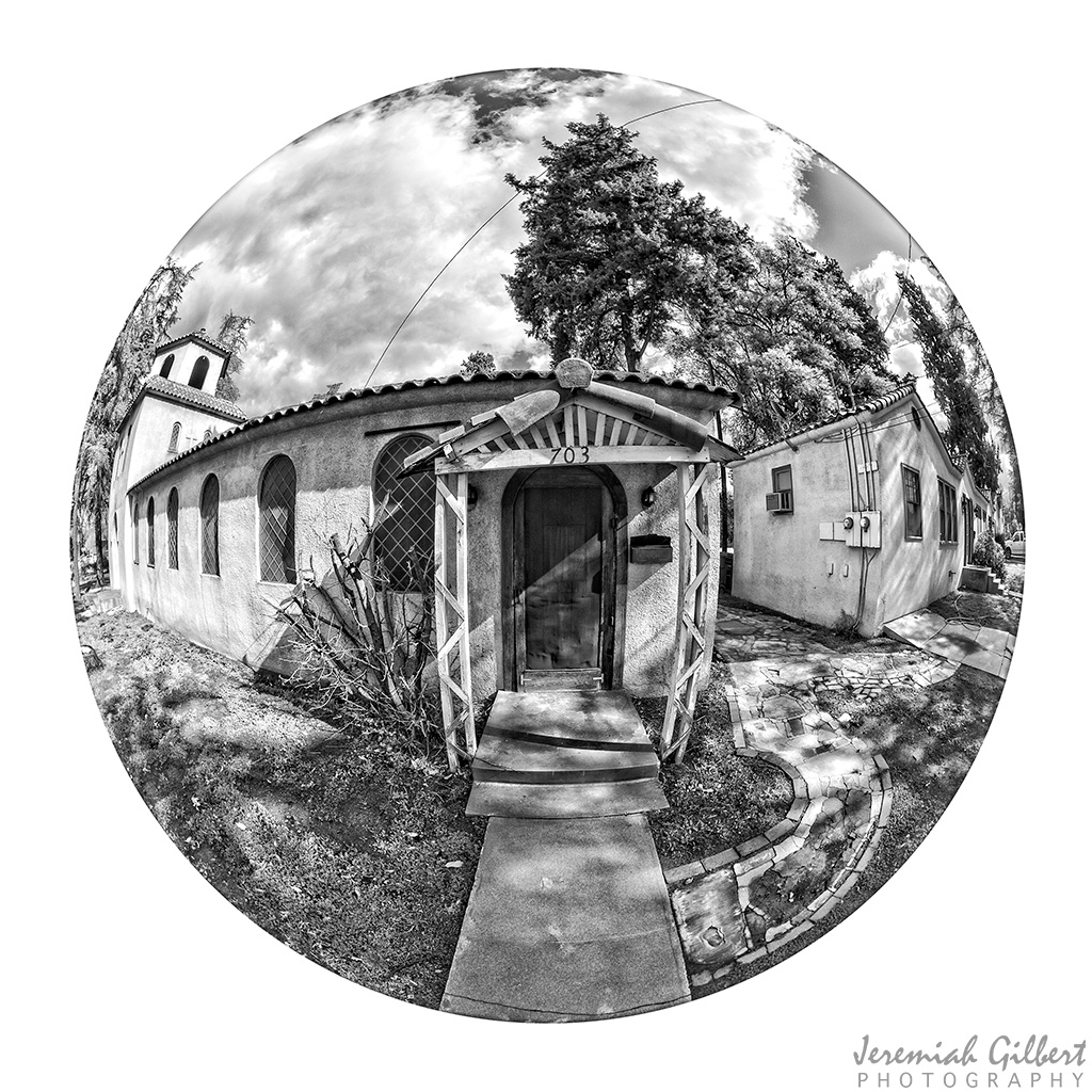 Architecture is one of my favorite subjects to photograph and below is one of my first attempts with the circular fisheye lens. The doorway below once belonged to the Shrine Children’s Home, operated from 1927 until 1935. At its height, the site included a chapel, swimming pool, dining hall, boys’ and girls’ dormitories, infirmary, several playgrounds, and a large garden area. Today the remaining buildings are privately owned as either apartments or single dwellings. (You can read about the origins of this project here.)