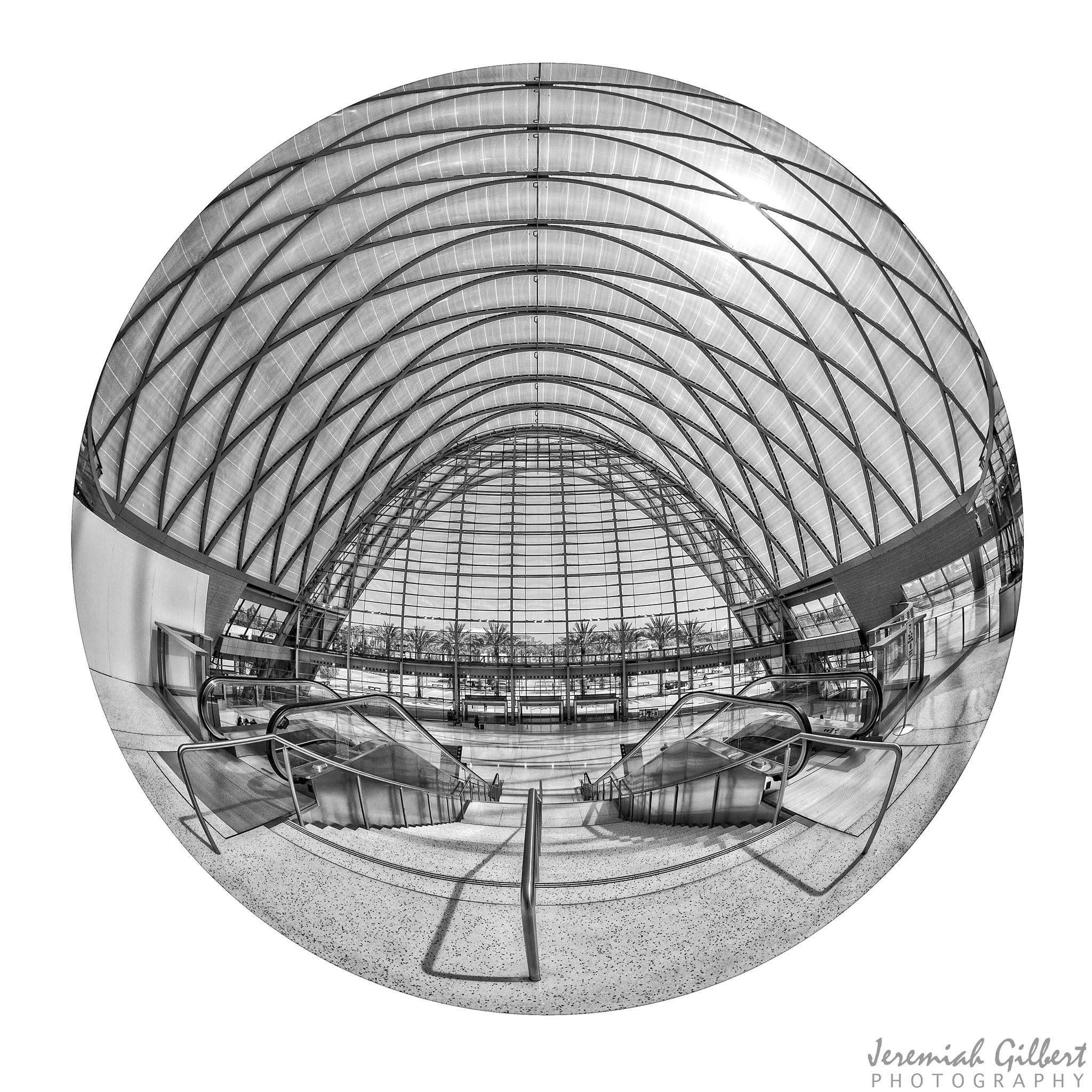 The Anaheim Regional Transportation Intermodal Center (ARTIC) is a transit center in Anaheim, California. It’s an architectural marvel of glass, metal, lines, and curves. In other words, the perfect subject for circular fisheye photos. (You can read about the origins of this project here.)