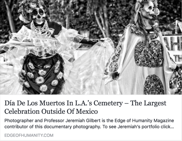 Saturday my wife and I attended the Día de los Muertos celebration held at the Hollywood Forever Cemetery in Hollywood, California. I am very pleased to announce that Edge of Humanity Magazine has published a set of my photos along with a short write up of mine about this celebration: https://edgeofhumanity.com/2017/10/30/celebrations/