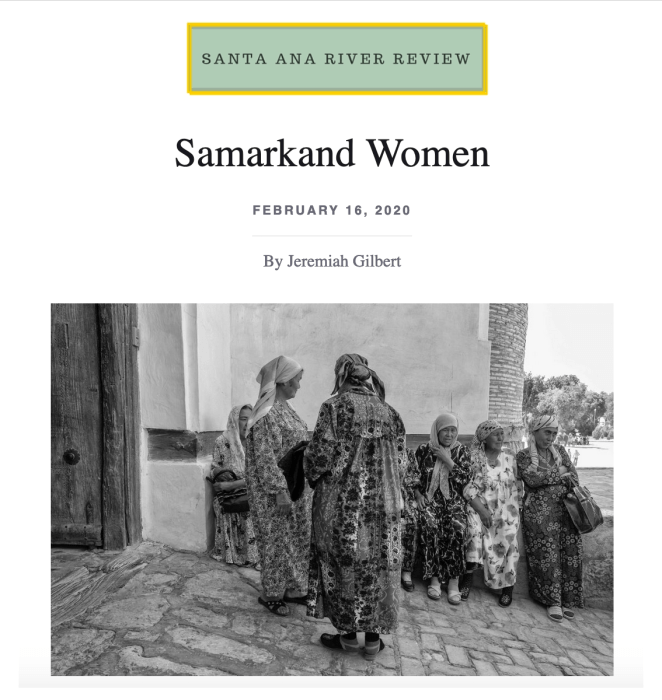 The Winter 2020 issue of the Santa Ana River Review is now out and includes my photo “Samarkand Women.” The table of contents for the issue can be found here: https://sarreview.ucr.edu/winter-2020-2/