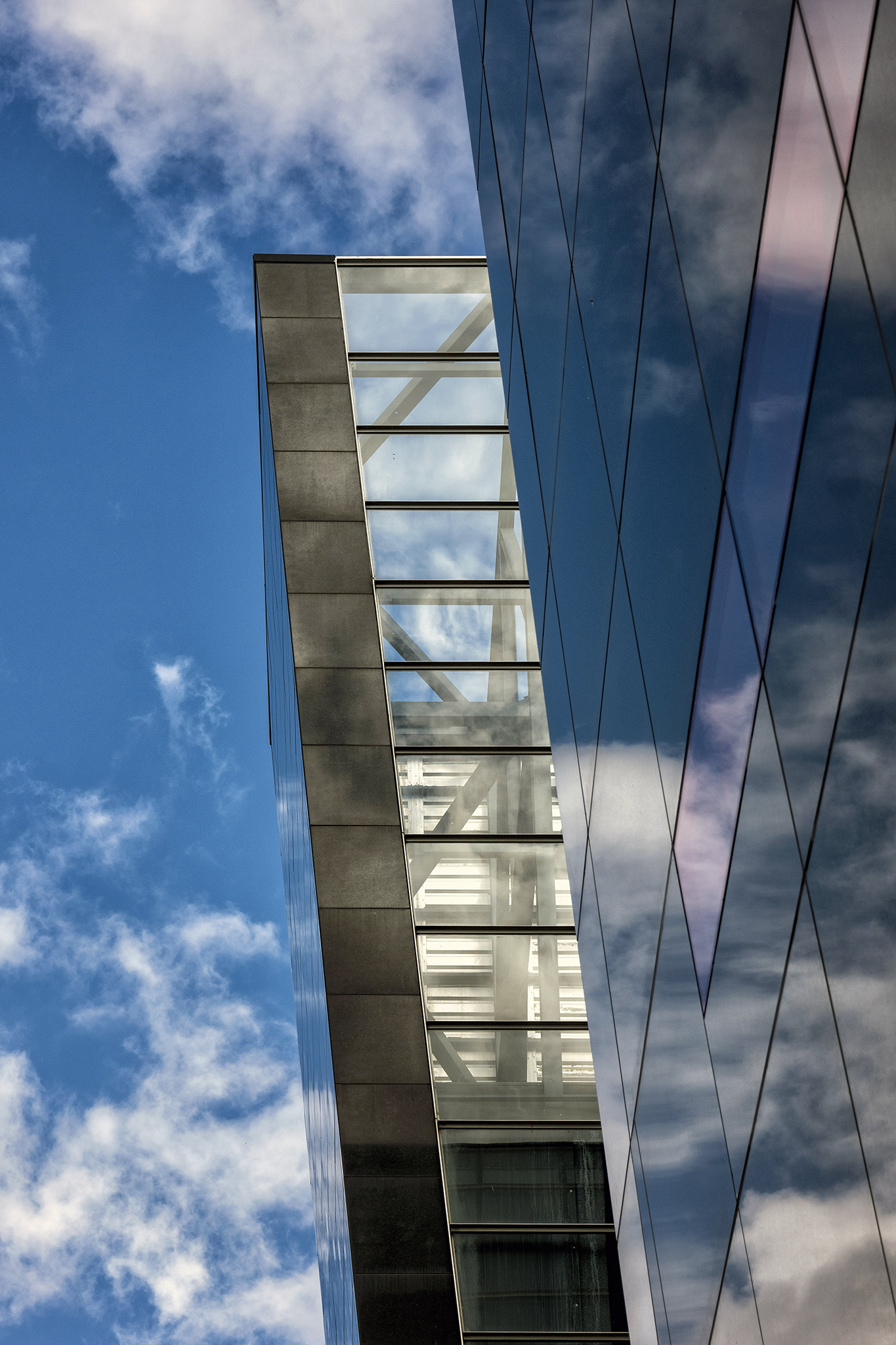 The Black Diamond is a modern waterfront extension to the Royal Danish Library’s old building on Slotsholmen in central Copenhagen. Its quasi-official nickname is a reference to its polished black granite cladding and irregular angles. All photos taken with the Leica CL and the Vario-Elmar-T 18-56mm ASPH lens (28-84mm equivalent). Processed using Photoshop CC and either Color or Silver Efex Pro.