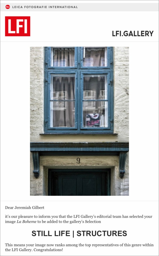 One of my Copenhagen photos was selected by Leica Fotographie International (LFI) Gallery’s editorial team for inclusion in their Still Life | Strictures category. Photo was taken with a Leica CL and Super-Vario-Elmar-T 11-23mm ASPH lens. You can view other photos in this category here: https://lfi-online.de/ceemes/en/gallery/selection/Still-Life-Structures.html