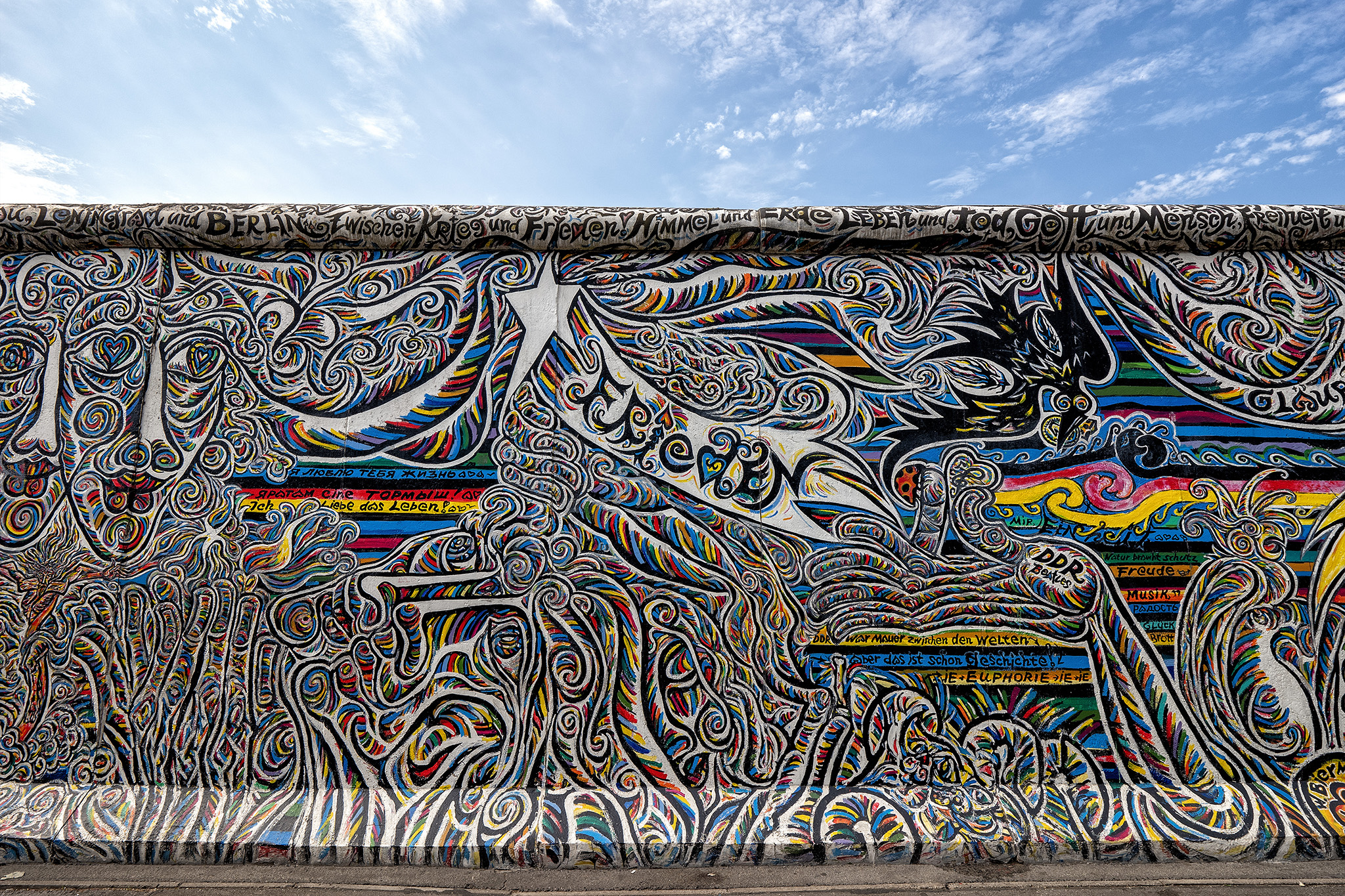 The East Side Gallery memorial in is a permanent open-air gallery on the longest surviving section of the Berlin Wall. It consists of a series of murals painted directly on a long remnant of the Berlin Wall, located near the center of Berlin. All photos taken with the Leica CL and the Super-Vario-Elmar-T 11-23mm ASPH lens. Processed using Photoshop CC and either Color or Silver Efex Pro.