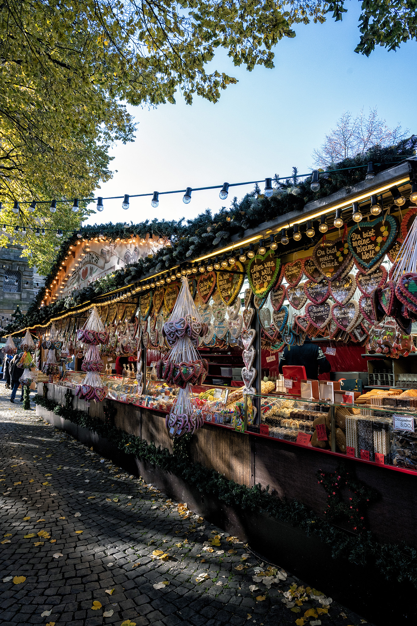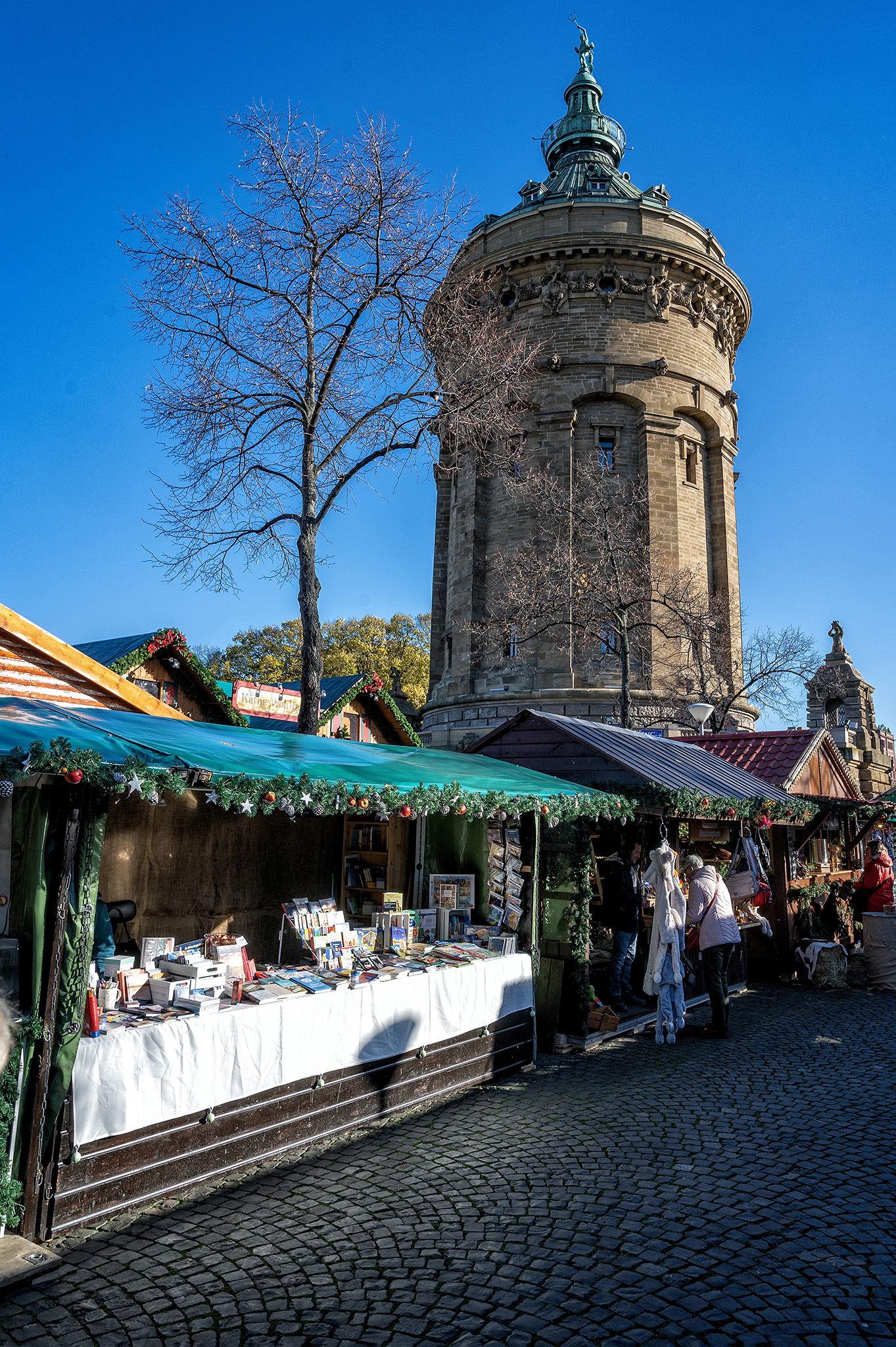 Mannheim is home to two Christmas markets and a Fairy-Tale Forest (Mannheimer Märchenwald). The largest and most famous market is comprised of 200 booths circling the Art Nouveau water tower (Wasserturm). We’re here again just as the market is opening, so we explore the area a bit before heading to the larger market. All photos taken with the Nikon Z6 and 24-70mm f/4 lens. Processed using Photoshop CC, ON1 Effects, and either Color or Silver Efex Pro.