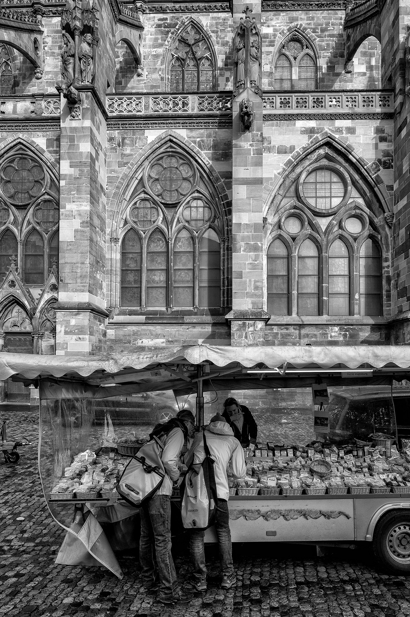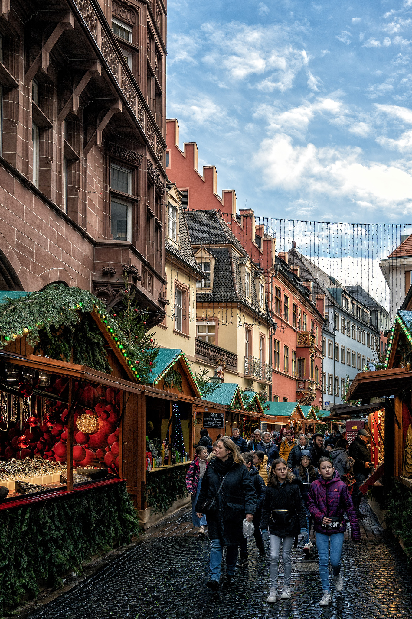 Freiburg is Germany’s southernmost city and a popular gateway to the Black Forest. It’s also the site of a lively Weihnachtsmarkt that’s centered on the Rathausplatz, or City Hall Square, with food and gift vendors’ booths spreading into neighboring streets of the historic Altstadt. All photos taken with the Nikon Z6 and 24-70mm f/4 lens. Processed using Photoshop CC, ON1 Effects, and either Color or Silver Efex Pro.