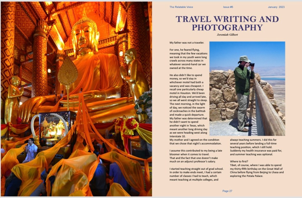 Issue 5 of The Relatable Voice magazine is now out with a profile of myself, including several of my favorite travel photos and how I came to travel writing.You can download a free copy of the issue here: https://www.relatable-media.com/online-store/The-Relatable-Voice-Magazine-Issue-n-5-Jan-2023-p522823990