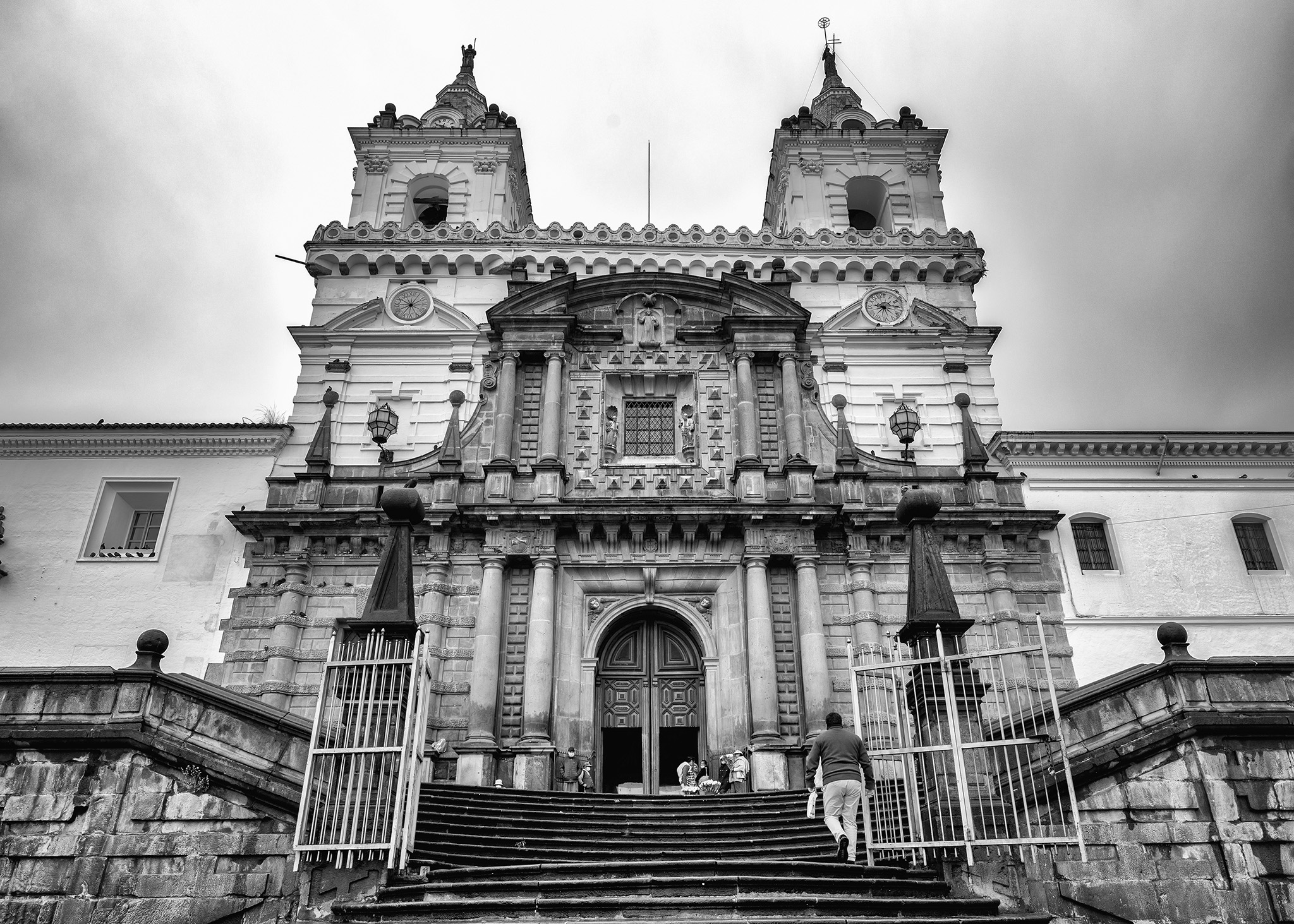 Quito is the capital city of Ecuador and second highest capital city after Bolivia’s La Paz. Constructed on the foundations of an ancient Incan city, it’s known for its well-preserved colonial center, rich with 16th- and 17th-century churches and other structures blending European, Moorish and indigenous styles. It’s a rainy morning when we set out to explore, allowing for oversaturated color and moody black & white photography conditions. All photos taken with the Nikon Z6 and either the Nikkor 14-30mm f/4 or 24-70 f/4 lens. Processed using Photoshop CC and Nik Collection’s Color Efex Pro 5 or Silver Efex Pro 3.