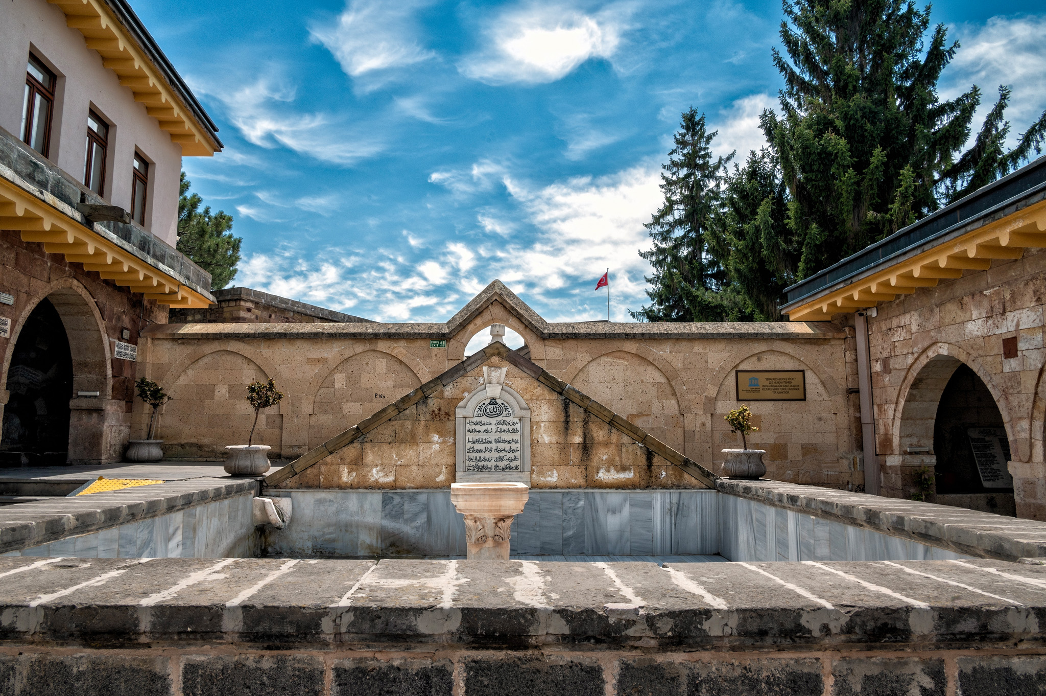 The Haji Bektash Veli complex is an Alevi Islamic Cultural Monument located in Hacıbektaş, Türkiye. It was built in the 13th century as a center for the Sufi saint Haji Bektash Veli. After his death, his mausoleum was built here. Atatürk’s 1925 ban on all dervish orders caused the exodus of the Bektashi Order to Albania, and the complex was closed for religious use. The Haji Bektash Veli complex was later declared a museum in 1964. All photos taken with the Nikon Z6 and 14-30mm f/4 or 24-200mm f/4-6.3 lens. Processed using Photoshop CC and either Nik Collection’s Color or Silver Efex Pro.