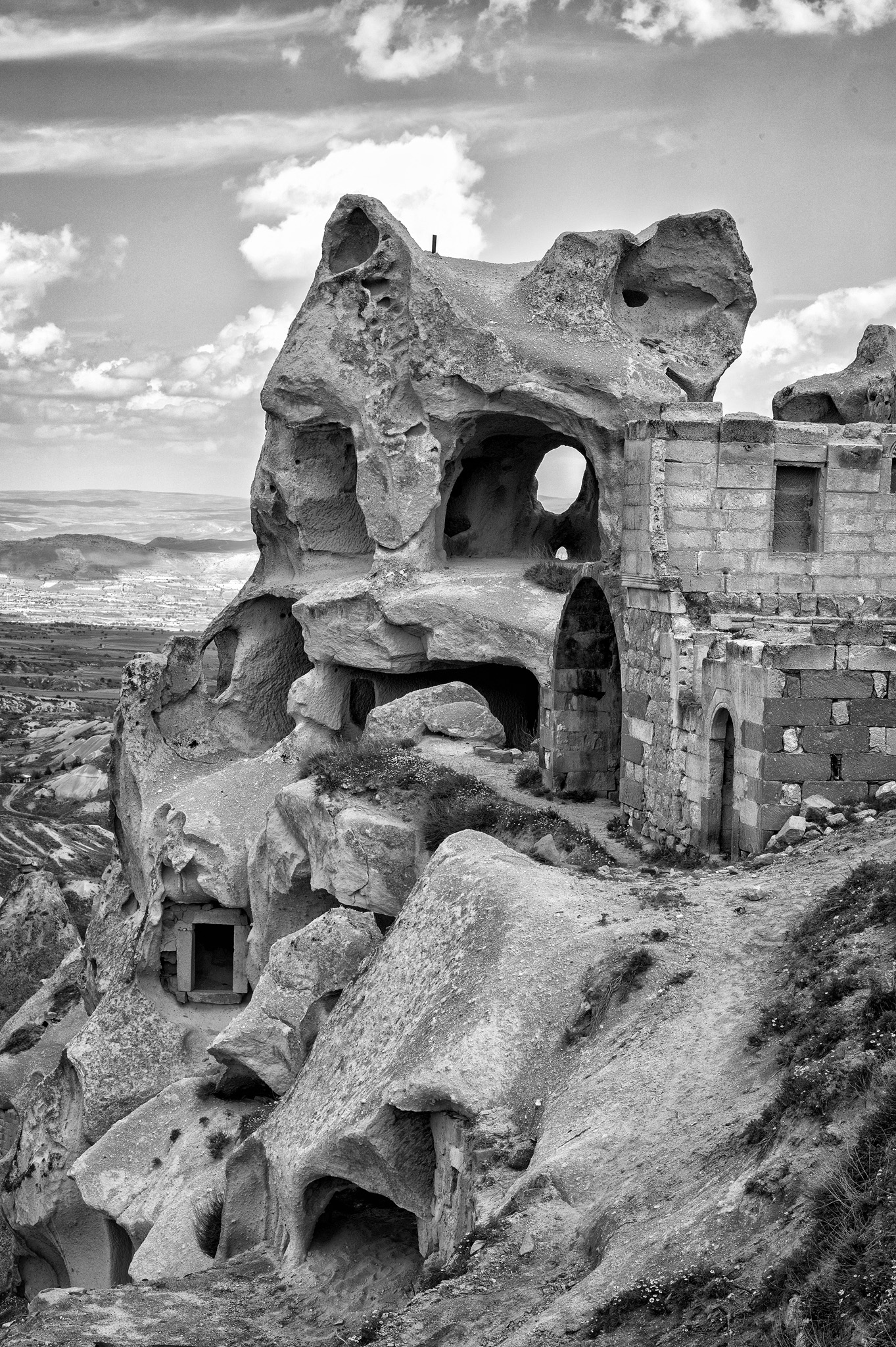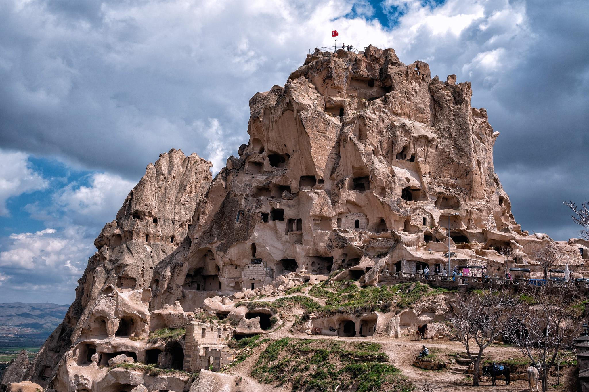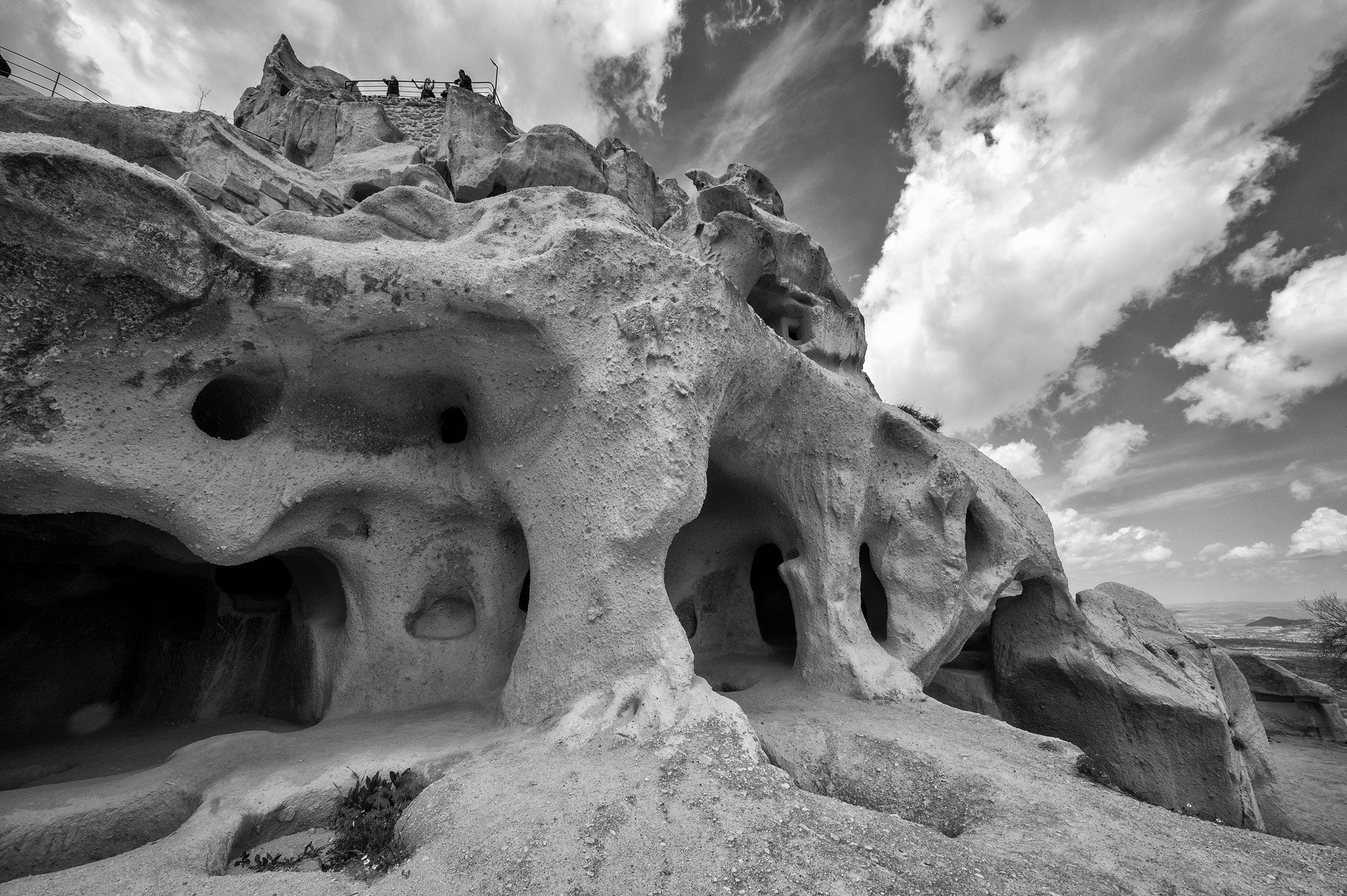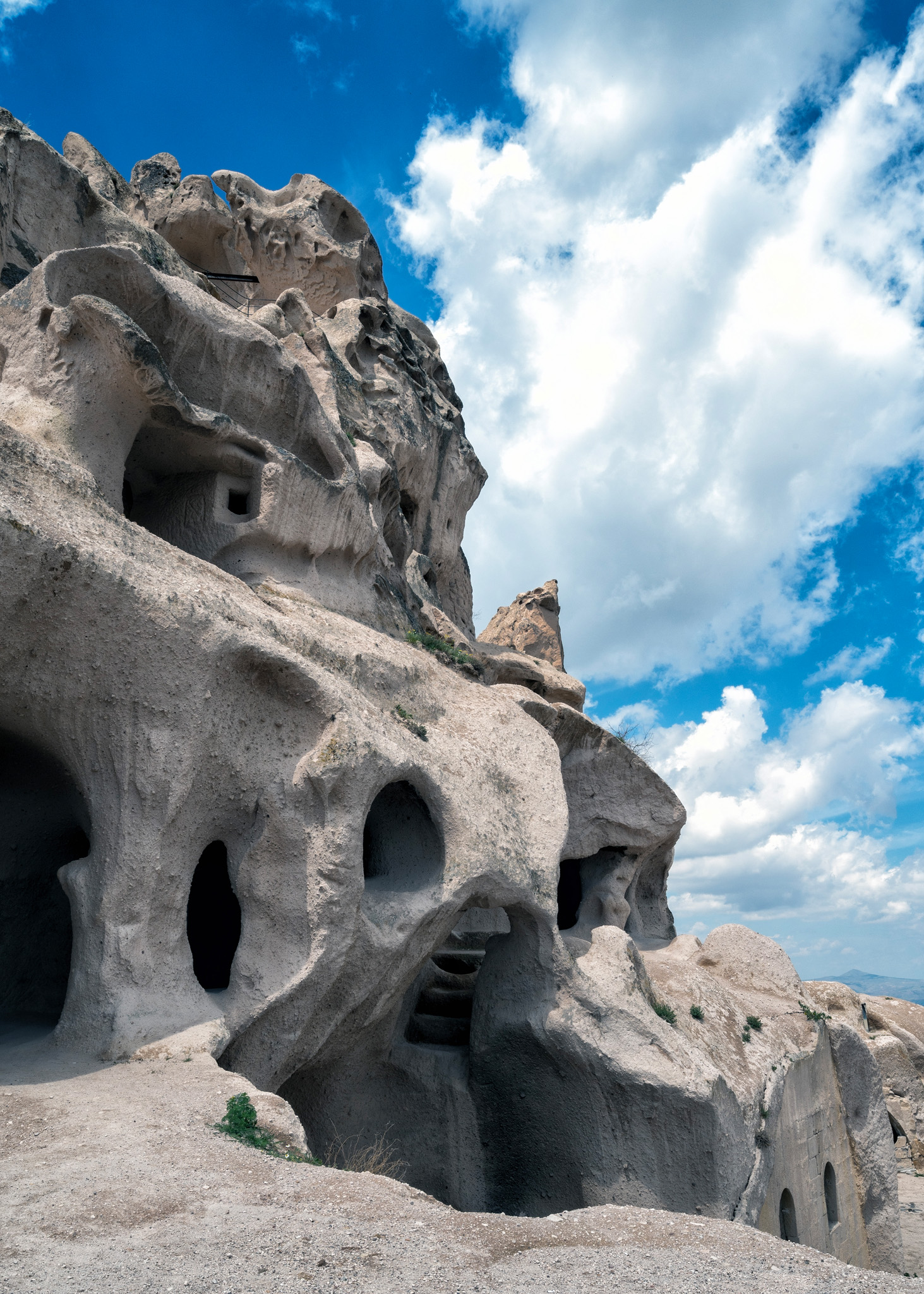 Uçhisar Castle is a historical landmark located in the town of Uçhisar in Cappadocia, Turkey. The castle is a natural rock formation that has been carved and shaped over centuries situated on a hilltop. It is composed of soft volcanic rock that was formed from volcanic ash millions of years ago. It served as a natural fortress in ancient times, providing strategic advantages for defense against invaders. The unique rock formations also allowed for the construction of homes, storage rooms, and even pigeon houses within the castle. All photos taken with the Nikon Z6 and 14-30mm f/4 or 24-200mm f/4-6.3 lens. Processed using Photoshop CC and either Nik Collection’s Color or Silver Efex Pro.