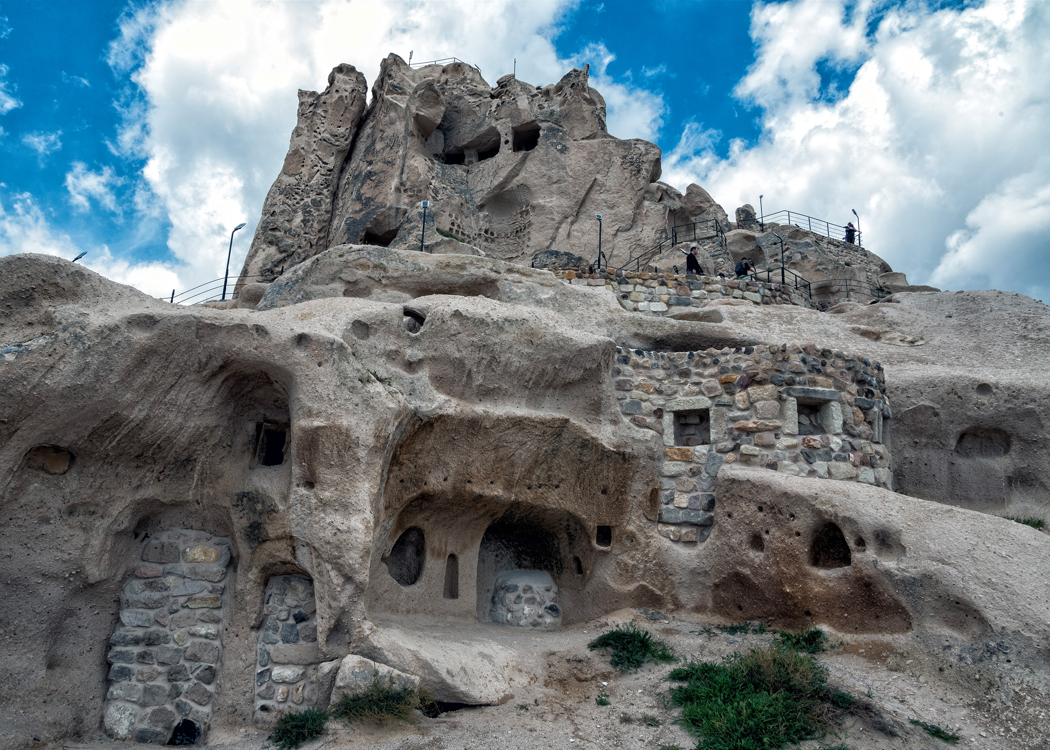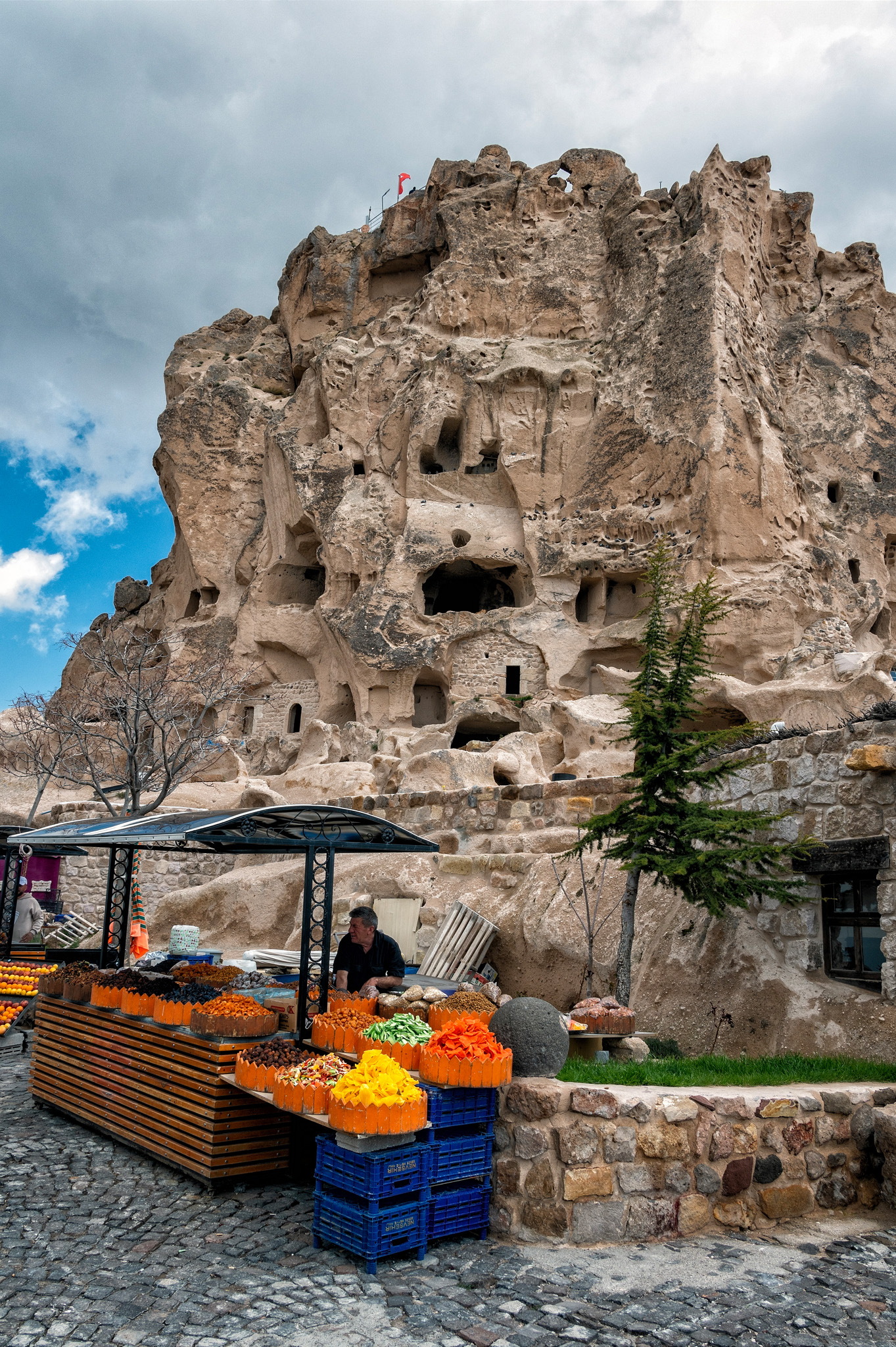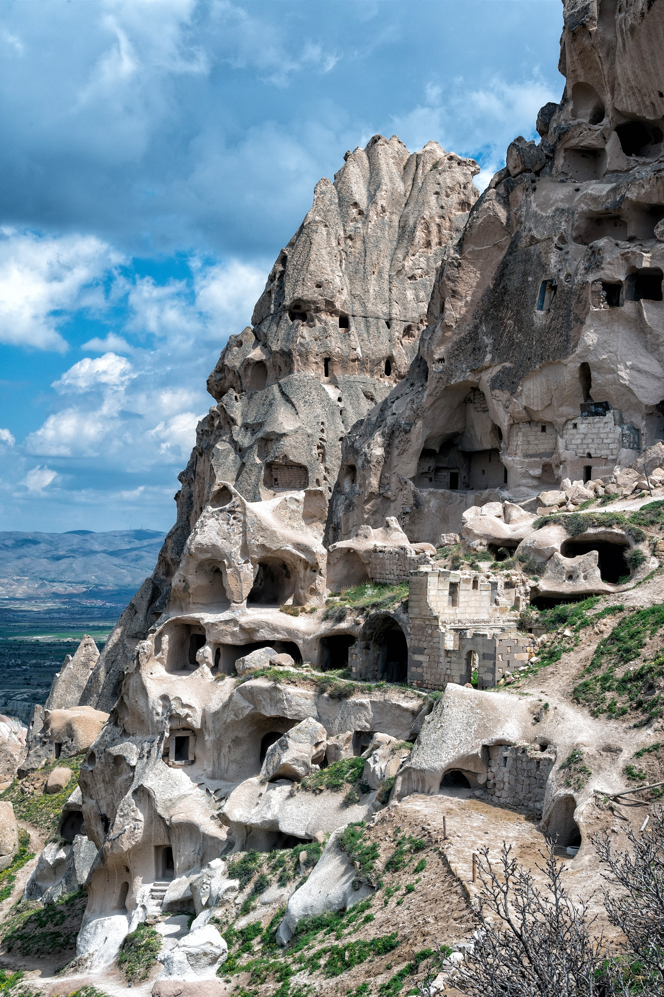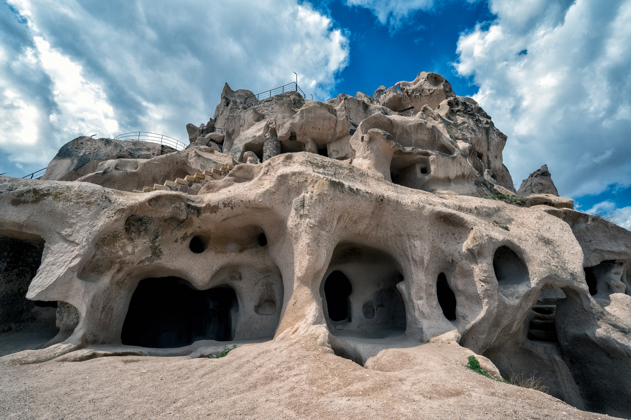 Uçhisar Castle is a historical landmark located in the town of Uçhisar in Cappadocia, Turkey. The castle is a natural rock formation that has been carved and shaped over centuries situated on a hilltop. It is composed of soft volcanic rock that was formed from volcanic ash millions of years ago. It served as a natural fortress in ancient times, providing strategic advantages for defense against invaders. The unique rock formations also allowed for the construction of homes, storage rooms, and even pigeon houses within the castle. All photos taken with the Nikon Z6 and 14-30mm f/4 or 24-200mm f/4-6.3 lens. Processed using Photoshop CC and either Nik Collection’s Color or Silver Efex Pro.