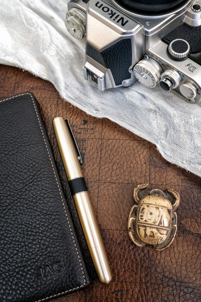 For my second book, From Tibet to Egypt: Early Travels After a Late Start, I wanted to be a bit more ambitious. As this book was based on my travel journals and I had called out two countries in the title, I wanted a photo the included these elements. The journal is one I kept during the time covered in the book, the white prayer shawl is from Tibet, and the scarab is from Egypt. I will admit that the camera included was not the camera used during this time, though this one is far more photogenic and would be my travel camera years later.