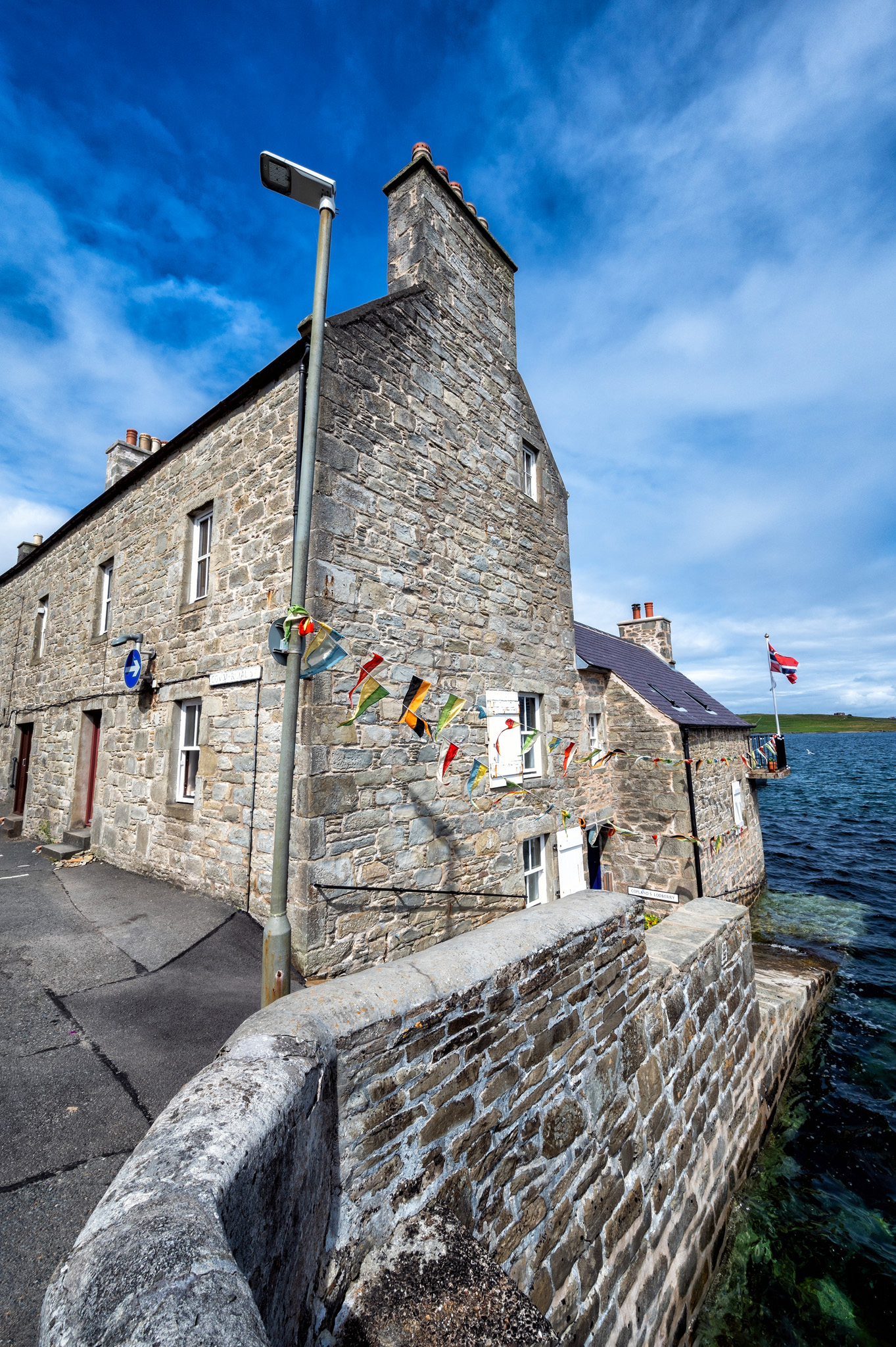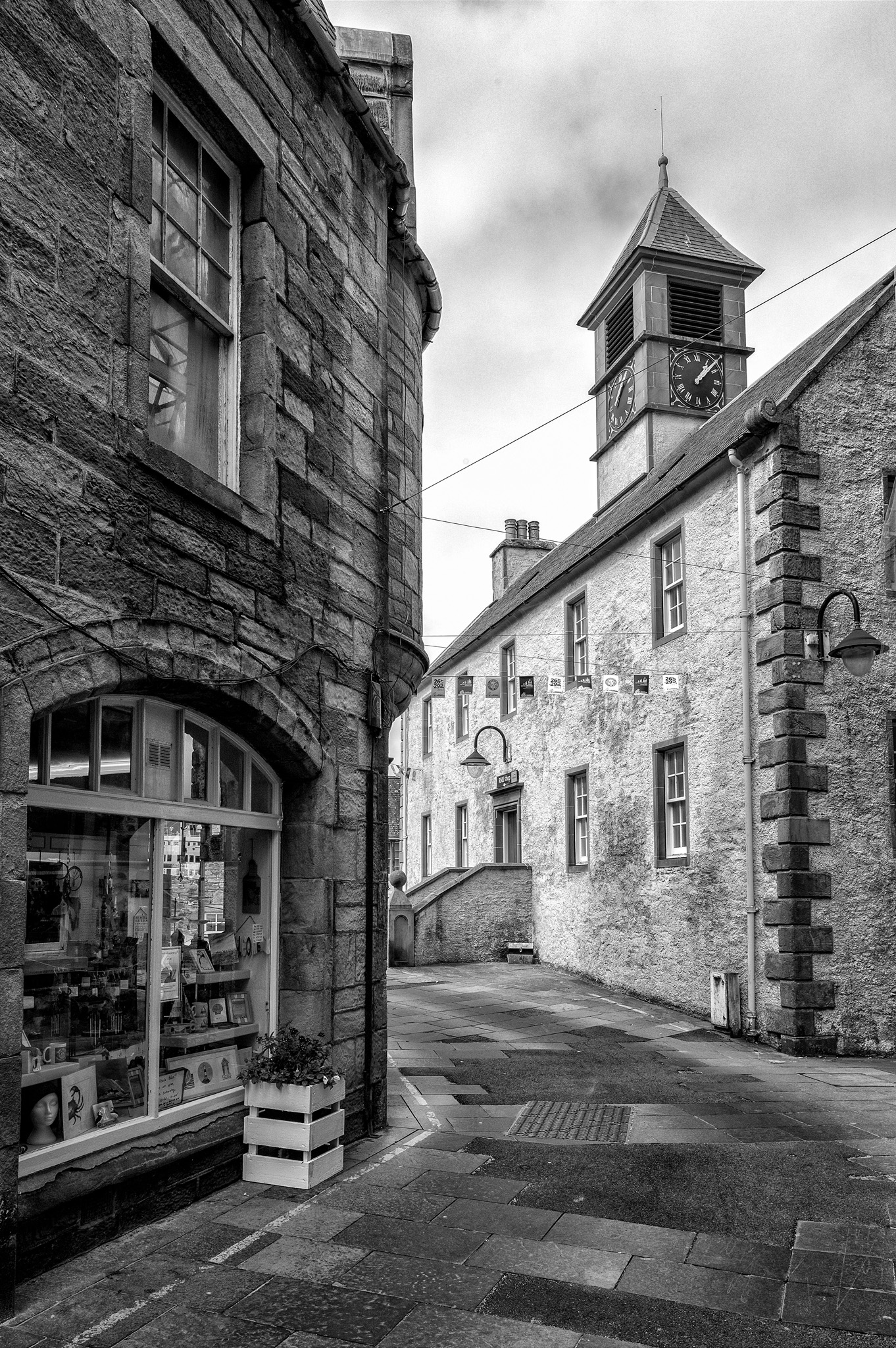 Lerwick is Shetland’s only town, with a population of about 7,500, although about half of the islands’ 22,000 people live within 10 miles of the burgh. Most of the sandstone buildings on the waterfront date from the 18th century, although a few are older. The narrow main street still follows the old shoreline but modern harbor works have been built out in front of shops and warehouses that once stood in the sea. All photos taken with the Nikon Z6 and 14-30mm f/4 or 24-200mm f/4-6.3 lens. Processed using Photoshop CC and either Nik Collection’s Color or Silver Efex Pro.