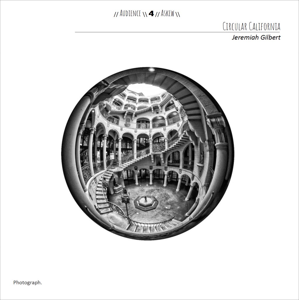 One of my Circular California photos appears in Volume 2, Issue 1 of Audience Askew Literary Journal. Photo was taken in Riverside, California with the Nikon Df and Sigma 8mm f/3.5 circular fisheye lens. You can purchase a print or digital copy of the issue here: https://www.magcloud.com/browse/issue/2535903