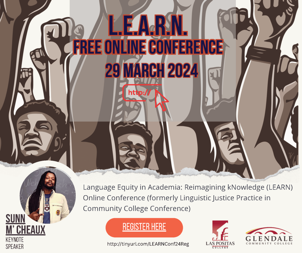 I will be presenting “Shoot, Take, Capture, Trigger: Decolonizing the Language of Photography” on March 29 as part of the Language Equity in Academia: Reimagining kNowledge (LEARN) Online Conference hosted by Glendale Community College and Las Positas College. More information about the conference can be found here: https://sites.google.com/view/learnconference24
