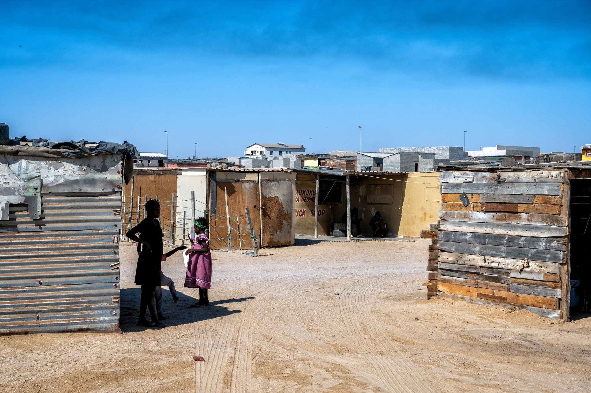 The Democratic Resettlement Community (DRC) is an informal settlement in Swakopmund, Erongo Region, Namibia. It was founded in 2001 as a temporary resettlement community for people waiting for subsidized housing in the city and was built mostly of reclaimed garbage from the city landfill. In 2015, the population was estimated to be around 20,000. There is no electricity and no sanitation. All images created using the Nikon Z6 with 24-70mm f/4 lens. Processed using Photoshop CC with Nik Collection’s Color Efex Pro.