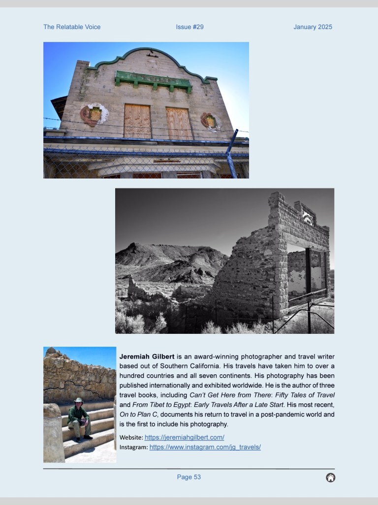 Relatable Voice Magazine Issue #29 is now out and includes a photo essay of mine about the Nevada ghost town of Rhyolite. You can grab a free copy here.