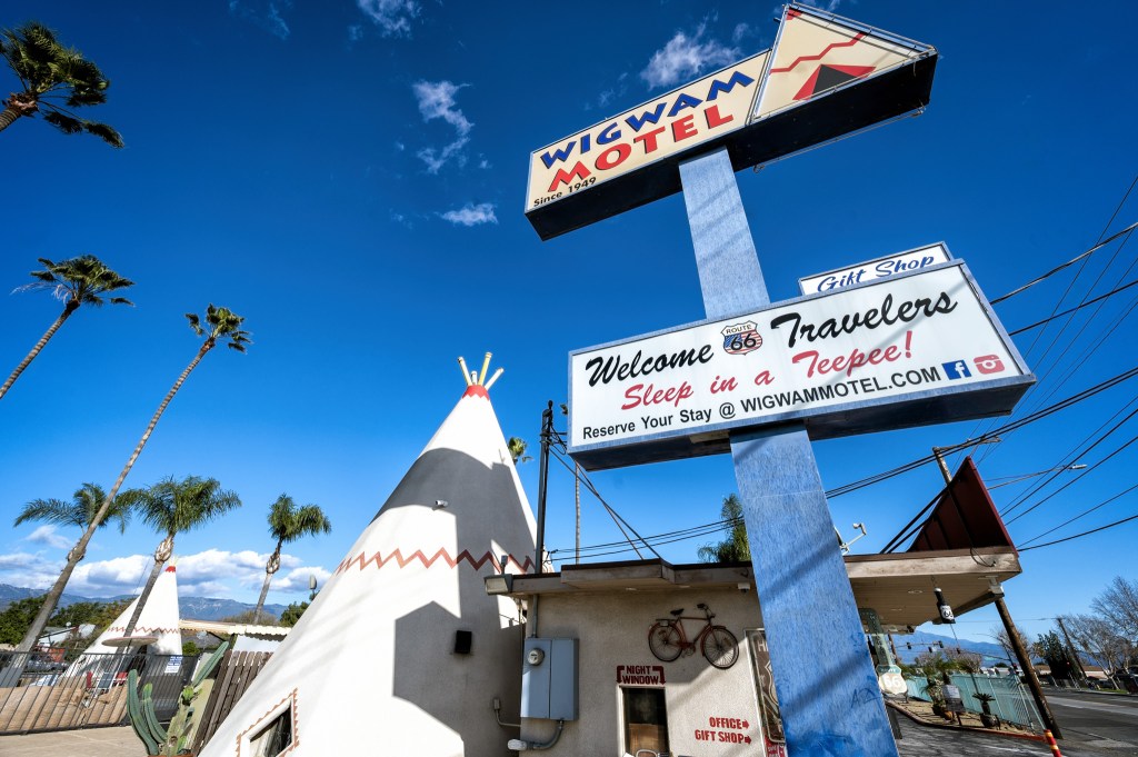 The Wigwam Motel along historic Route 66 is one of Southern California’s most memorable roadside attractions. Built in 1949, it’s known for its distinctive teepee-shaped guest rooms, each standing about 32 feet tall and arranged in a village-style layout right along Foothill Boulevard, the old alignment of Route 66. The motel was the seventh and final Wigwam Village constructed by designer Frank A. Redford, part of a unique series of roadside lodging sites built between the 1930s and late 1940s that embraced eye-catching novelty architecture to draw in travelers. Only three of the original seven Wigwam Villages survive today.