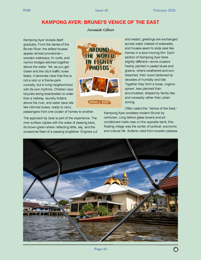 Relatable Voice Magazine Issue #42 is now out and includes a photo essay of mine about Brunei’s Kampung Ayer, the world’s largest floating village. You can download a free copy here.