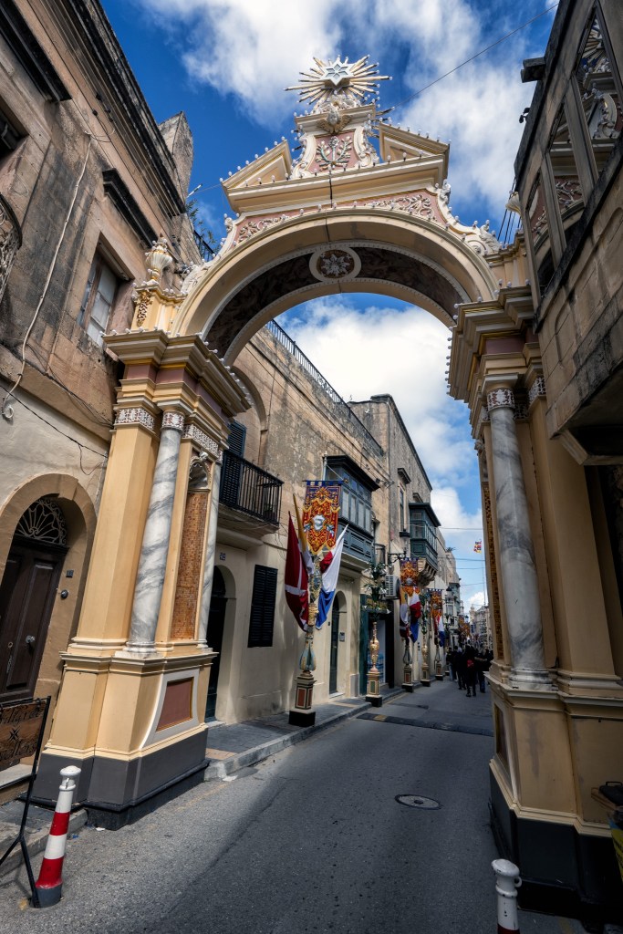 Rabat is a historic town located just outside the old capital of Mdina, in the central part of the island of Malta. Its name comes from the Arabic word for “suburb,” reflecting its origins as the settlement that grew beyond Mdina’s fortified walls during the medieval period. Today, Rabat is known for its quieter, more residential atmosphere compared to Mdina, while still offering a rich blend of cultural and historical attractions. I’m here in mid-March, when town is decorated with banners and flags in preparation for the celebration of the Feast of St. Joseph, the town’s patron saint.