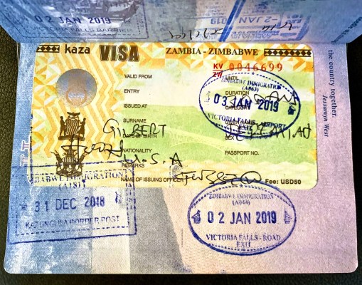 We’re told to get to the Zimbabwe border early as it can get rather busy. It opens at 7 a.m., so we’re up early and on our way to arrive before 8 a.m. There are a number of buildings at the border, but we make our way to the one for visitors requiring a visa. We’re in need of KAZA Visas, which allows for unlimited entries and exits between Zimbabwe and Zambia, where we plan to pop into in a few days. However, this type of visa can only be acquired at the border and they have been known to run out.