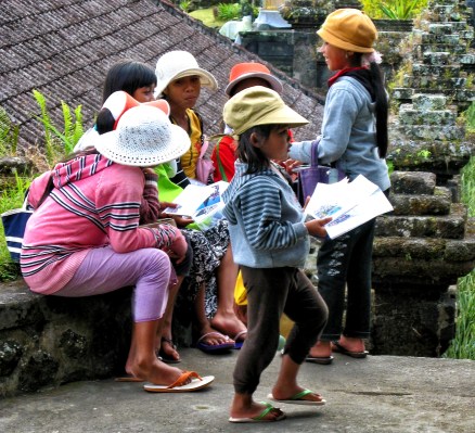 While a beautiful and expansive location, one is followed the whole time by young girls selling packs of postcards. Outside the temple complex, from the parking area to the stairs, one hears the incessant cry of “One for 10,000!” At the time, 10,000 Indonesian rupiah is a little over $1. Inside the complex the offer becomes “Two for 10,000!” This offer follows you everywhere—outside temples, inside temples, resting at the top—from every direction and from dozens of girls and is pronounced “Two for ten thouuuuuusaaaaaaand!”